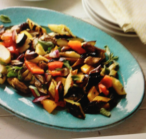 Heat the olive oil in a Dutch oven over medium-high heat. Add the onion, red pepper, banana pepper and garlic to the pan and sauté until tender, 5 to 7 minutes. Add the tomato paste and continue cooking for 3 to 5 minutes. Add the tomatoes, zucchini, eggplant and cook until tender, about 10 minutes, adding water as necessary. Season to taste with salt and pepper. This can be done up to 2 days ahead and kept refrigerated. Serve hot with Parmesan and basil on top. Great served on grilled toast.