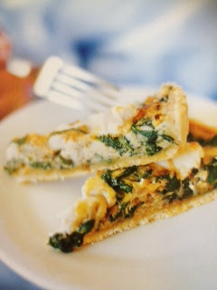 5. Spread the leek and fennel over the pastry. Top with the spinach and cheese. Combine the eggs and cream, pour into the pastry shell and bake for 40 minutes.