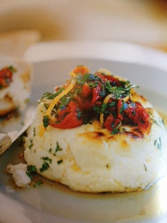 Preheat oven to 425F. Unmold the ricottas onto a baking sheet lined with parchment paper and bake for 20 minutes, or until golden.