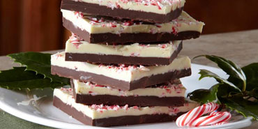 Chill until both layers are firm. Lift foil out of pan and shake off excess candy. Peel foil from bottom of peppermint bark. Trim edges. Cut into 2" squares.