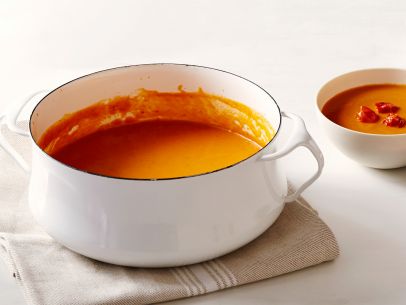 Remove the roasted tomatoes, garlic and onions from the oven and transfer to a large stockpot (set aside the cherry tomatoes for garnish). Add 3 cups chicken stock, the bay leaves and butter. Bring to a boil, then reduce the heat to medium and simmer until the liquid is reduced by one-third, 15 to 20 minutes. Remove the bay leaves.