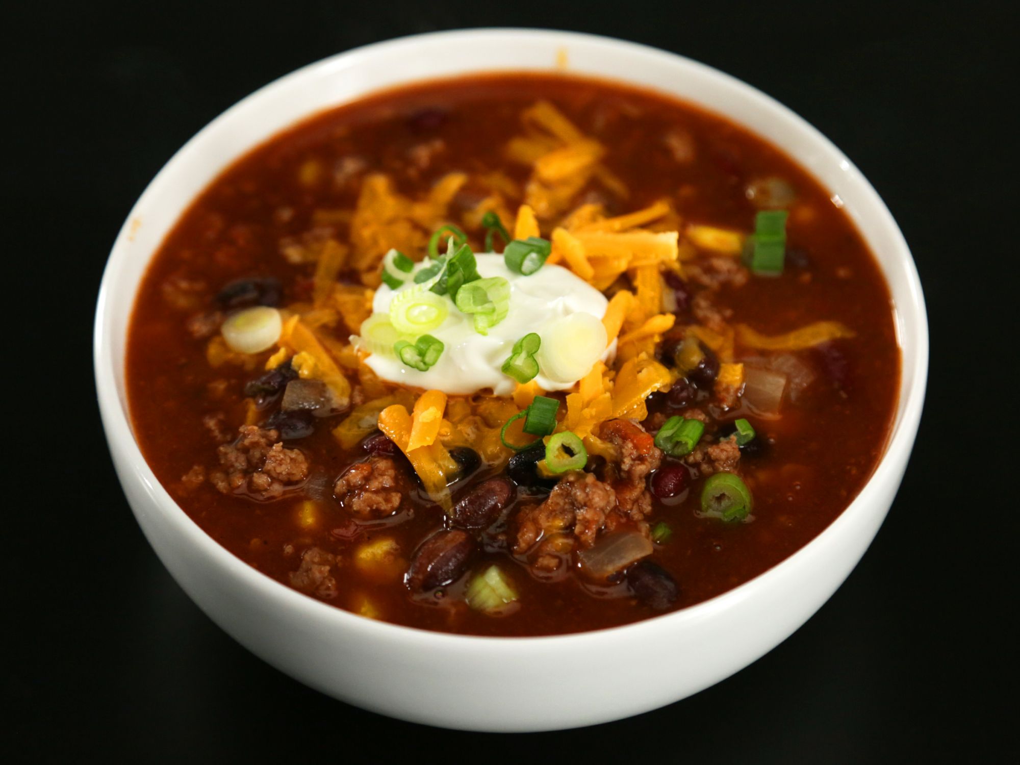 Stir in stock, corn, tomatoes, and beans. Seal Instant Pot with lid, and set steam vent to seal. Change settings to Manual Cook on high pressure, and set timer for 2 minutes (Instant Pot will take at least 10 minutes to build pressure before counting down). Carefully release steam valve. Once steam is released, open lid and divide soup evenly among 6 bowls. Top each serving with cheese, sour cream, and scallions.