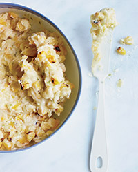 In a large cast-iron skillet, cook the corn over high heat, turning, until charred in spots, about 10 minutes. Let cool slightly. Cut the kernels off the cob and transfer to a bowl. Stir in the butter, cheese, lime zest and lime juice and season with salt and pepper. Serve with grilled fish, chicken or steak or roasted vegetables.