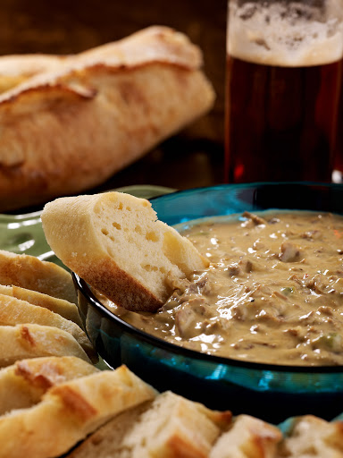 Add the cream cheese, Cheez Whiz, and Velveeta. Cook, stirring constantly, until thoroughly melted, combined, and warm. Place the knob on the warm setting and enjoy with the sliced baguette.