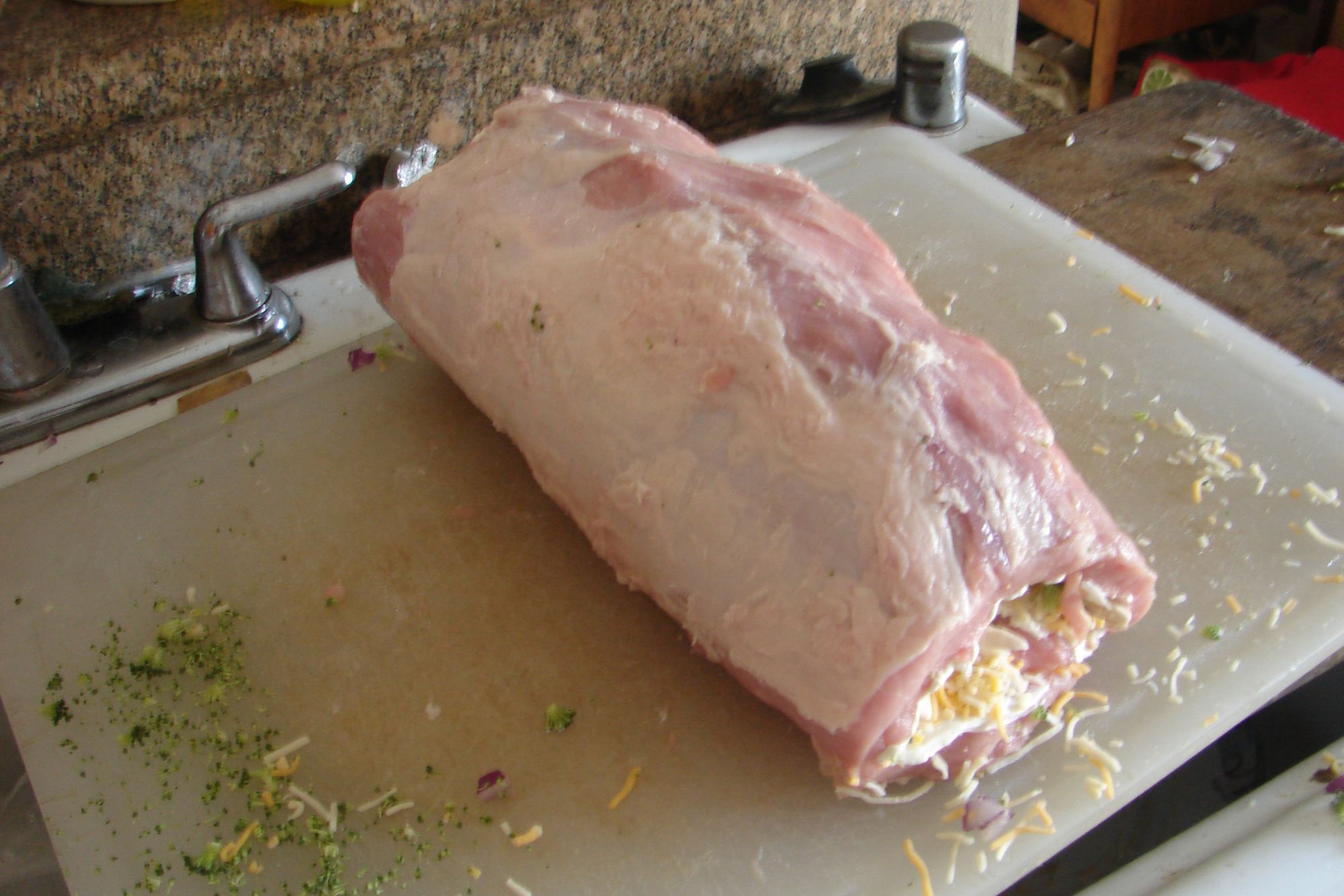 8) STARTING AT THE ONE END ROLL BACK UP AND TIE WITH BUTCHERS STRING AT EACH END AND IN THE MIDDLE.