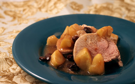 4. Spoon the apple mixture around the pork tenderloin. Cover and bake 30 minutes.