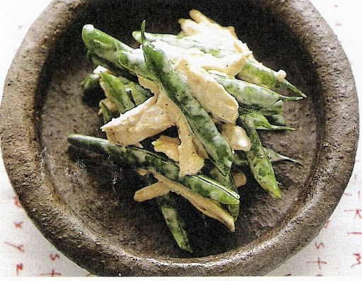 2. String the beans and chop in half diagonally. Parboil for a few minutes, taking care not to overcook them. Drain and pat dry.