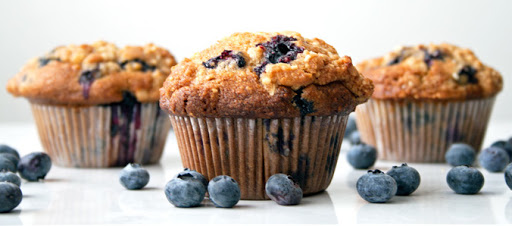 4. Combine flour, baking powder, baking soda and potassium salt and mix together thoroughly. Add dry ingredients into wet and stir until just combined. Fold in blueberries.