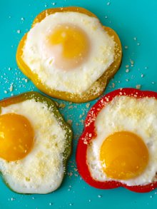 1. Take 1 large bell pepper, slice into four 1/2″-thick rounds (or “flowers”) and remove the inner membranes (or white part).