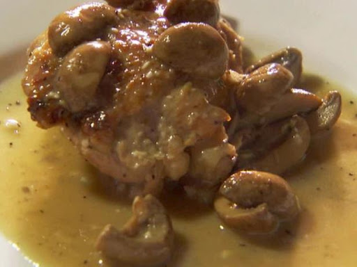 Remove the chicken to a bowl and discard the thyme. With a fork, mash together the butter and 1/4 cup flour and add it to the sauce. Simmer, stirring constantly, over medium heat for 5 minutes, until slightly thickened. Season to taste (it should be highly seasoned), put the chicken back in the sauce, and serve hot.