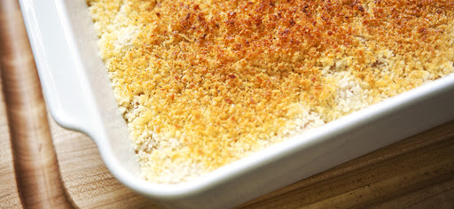 Sprinkle the seasoned breadcrumbs evenly over the top of the pasta and bake until the breadcrumbs are toasted, 25 to 30 minutes. Remove from the oven and sprinkle with a little more freshly ground black pepper. Serve hot.
