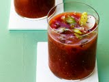 Add some crushed ice to 2 chilled glasses. Don't overload the Bloody Marys with ice so the flavors remain intense, not diluted. Add a hearty spoonful of the shallot mixture, then pour in the tomato juice mixture, filling the glasses almost to the top. Add another spoonful of the shallot mixture. Top each drink with a splash of vodka, like a "floater," and a squeeze of the remaining lemon half. Serve immediately.
