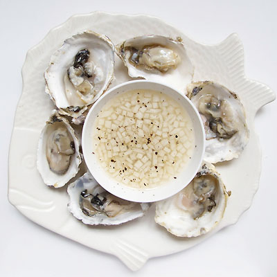 Freshly Shucked Oysters with Asian Pear Mignonette