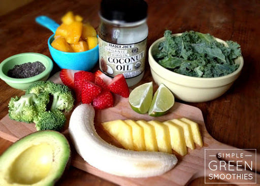 Blend kale, coconut oil and water first for 30 seconds (or until it is a juice-like consistency). Add frozen fruits 1 cup at a time and blend for an additional 30-45 seconds. Add remaining fresh fruits and blend until desired smoothness. Serve immediately for best texture and to receive optimal nutrients.