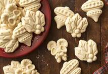 Dip a cookie stamp in flour, center it over a ball of dough, and press it down until the dough is 1/4" to 3/8" thick.