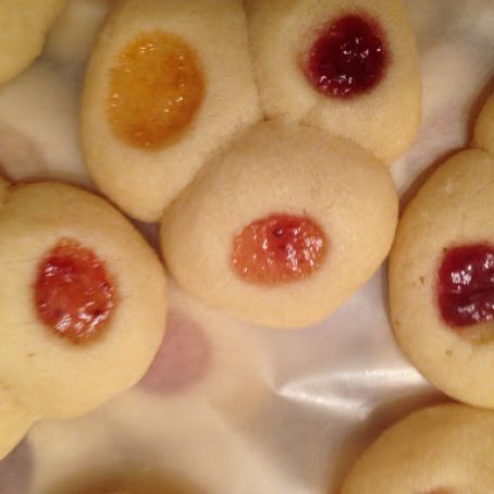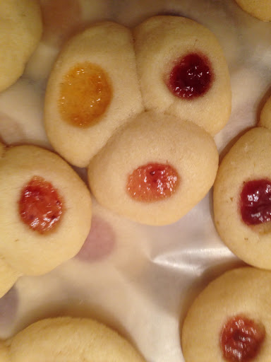 Fill indentations in each cookie with about 1/8 teaspoon jam (each cookie should have 3 different fillings), avoiding any large pieces of fruit.