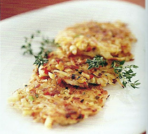 4. Coat a nonstick griddle or large skillet with cooking spray. For each cake, spoon about 1/3 cup potato mixture onto the hot griddle or skillet; flatten slightly with a spatula. Cook for 5 minutes, or until golden brown on each side.