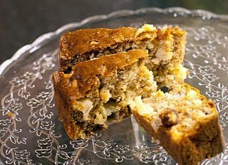Olive oil isn't an obvious cake ingredient, but used as a substitute for butter it can make a lovely moist crumb. The subtle olive flavour works particularly well with fruit. This is a really nice afternoon-tea kind of cake, not too sweet and sickly, just lovely and plumptious and full of soft apple and sultanas. I like to think it's one of my five-a-day but I may be fooling myself...