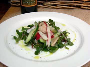 Arrange salad on a plate and season with horseradish. Drizzle with olive oil.
