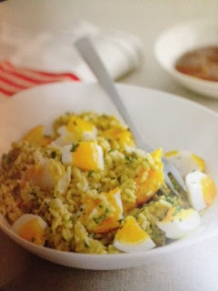 Melt the butter in a skillet over the medium heat. Add the onion and cook for 3 minutes, or until soft. Add the curry powder and cook for an additional 2 minutes. Add the rice and stir through, cooking for 2-3 minutes, or until heated through. Add the fish, parsley, eggs, and cream, and stir until heated through. Season and serve with chutney.