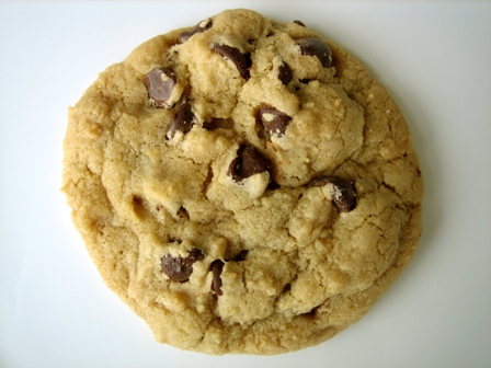 These oversized cookies are chewy and thick, like many of the chocolate chip cookies sold in gourmet shops and cookie stores. They rely on melted butter and an extra egg yolk to keep their texture soft. These cookies are best served warm from the oven but will retain their texture even when cooled. To ensure the proper texture, cool the cookies on the baking sheet.