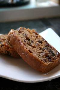 2)Mix all ingredients together, including malty tea and pour into tin. Bake for 1 1/4 – 1 1/2 hours. Stand for 10 min before slicing.