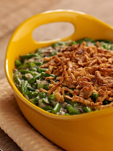 Tip: This is a perfect make-ahead recipe. Assemble to the point of baking, but don't add the fried onions. Cover and freeze. Thaw for 24 hours when ready and add the onions just before baking.