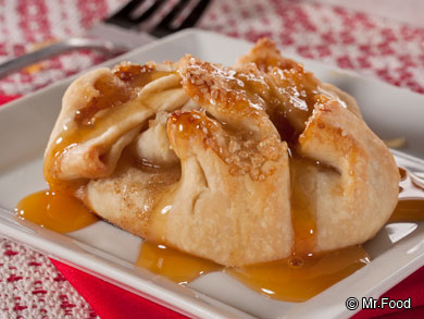 Preheat the oven to 425 degrees. Unroll pie crust according to package directions. Cut into fourths. Place apples evenly in center of each fourth. Pull corners over apples, pinching to seal. Place on a baking sheet; brush evenly with egg white, and sprinkle with sugar.