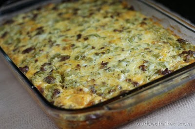 3.Preheat oven to 350 degrees F (175 degrees C). Remove casserole from the refrigerator 30 minutes before baking.