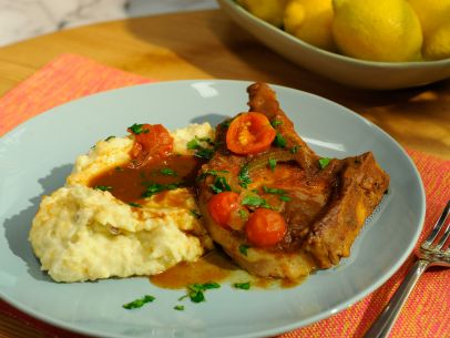 Allow to rest 5 minutes before serving. Garnish with the reserved bacon and chopped parsley or cilantro. Serve with Garlic Red Bliss Mash.