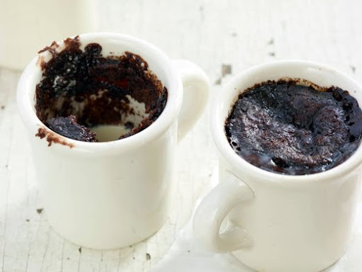 8. Divide the batter between the mugs or ramekins, filling each one about half full. Use the back of a spoon to press the batter into the cup.