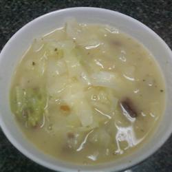 2. In a large pot over high heat, combine the browned sausage, potatoes, onion and water. Bring to a boil, reduce heat to low and simmer for 20 minutes. Add the cabbage, return to a boil, reduce heat and simmer for another 20 minutes. Add 2 1/2 cups of the milk and heat slowly to just under a boil. (Note: Don't try to do this too fast, or the milk will burn on the bottom of the pot.)