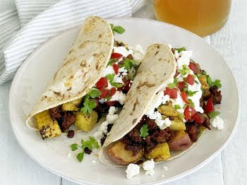Combine the tomatoes, scallion, jalapeno and cilantro in a bowl and season with salt. Warm the tortillas in a dry skillet or wrap in a damp towel and warm in the microwave, about 1 minute. Fill with the squash and chorizo mixture and sprinkle with the cheese and salsa. Top with sour cream and/or guacamole, if desired.