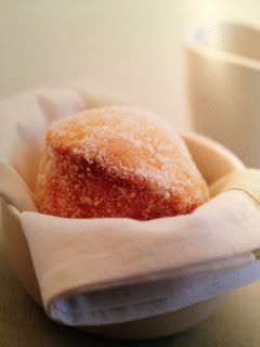 Mix the lemon juice and remaining butte in a bowl, and spread the remaining sugar on a plate. Brush the warm muffins with lemon butter and poll in the sugar. Serve warm.