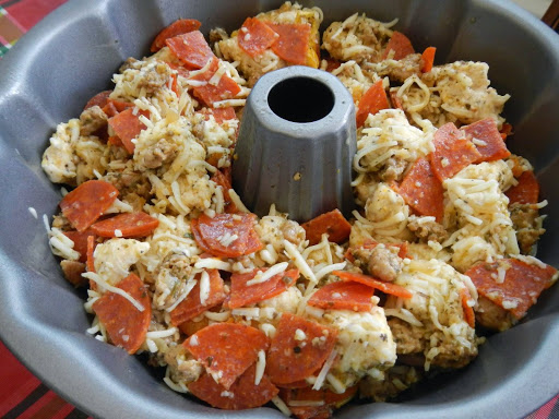 • 1 (8 oz.) package of pepperoni (cut into quarters)