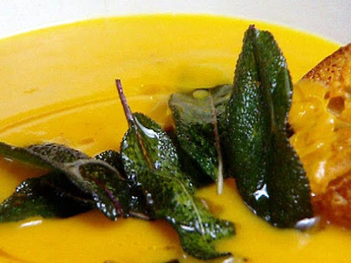 Pour soup into bowls, add fried sage leaves, drizzle with good quality extra virgin olive oil, and serve with the crostini.