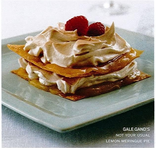 CHEF WAY In her version of lemon meringue pie, Gale Gand forgoes a traditional crust for quick-baked sheets of sugared phyllo dough, which she layers with house-made lemon curd and a brown-sugar meringue. The recipe, a classic at Tru restaurant in Chicago, appears in Gand's book Butter Sugar Flour Eggs (Clarkson Potter).