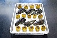 5. Smear bottom of 13- by 9-inch baking dish with 3/4 cup tomatillo sauce. Place tortillas on 2 baking sheets. Spray both sides of tortillas lightly with cooking spray. Bake until tortillas are soft and pliable, 2 to 4 minutes. Increase oven temperature to 450 degrees. Place warm tortillas on countertop and spread 1/3 cup filling down center of each tortilla. Roll each tortilla tightly and place in baking dish, seam-side down. Pour remaining tomatillo sauce over top of enchiladas. Use back of spoon to spread sauce so that it coats top of each tortilla. Sprinkle with remaining 1/2 cup cheese and cover baking dish with foil.