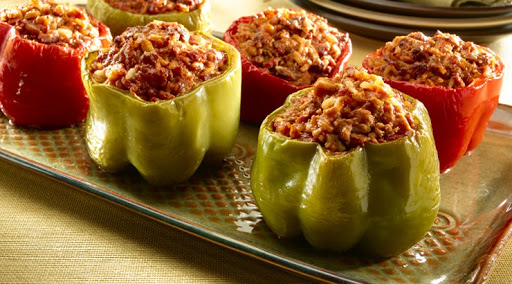• 6 medium bell peppers (red, green, orange and/or yellow) tops cut off, seeds and veins removed