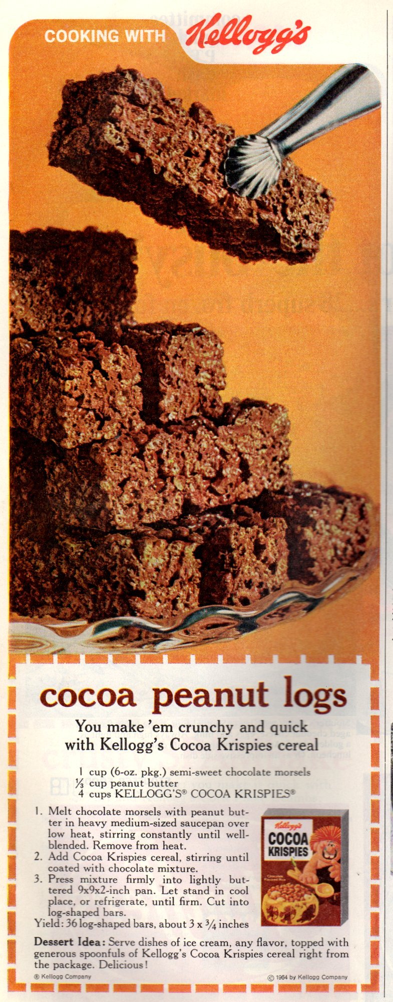 Cocoa peanut logs with Cocoa Krispies cereal (1968)