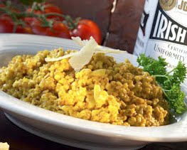 2) Begin by adding the hot broth 1/2 cup at a time (and saffron if used), stirring continuously, until each 1/2 cup has been absorbed. When oats have absorbed enough broth to be a rich, creamy texture with a bit of bite left, remove from heat.