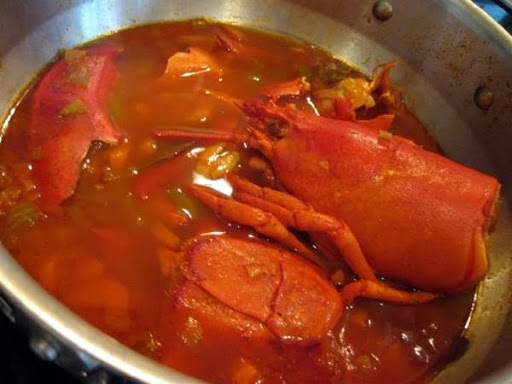 Remove the tails, knuckle meat, and claws from lobsters; set the knuckle meat aside. Rub the lobster bodies lightly with oil. Season with salt and pepper. Place the lobster bodies in the oven and roast until the shells begin to darken and an aroma develops, approximately 25 minutes. Combine the roasted lobster bodies and vegetabless in a large stockpot and cover with cold water. Bring the water to a boil and reduce to a simmer. Simmer for 1 hour, ladling off the foam and oil as they rise to the top. Strain the liquid and quickly cool.