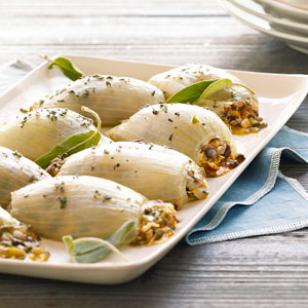 In this recipe for stuffed onions, mild onion layers are filled with a tasty mushroom and Cheddar cheese blend spiked with sage and a splash of dry sherry. Serve as a vegetarian main dish for 4 or as a vegetable side dish for 8.