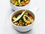 Heat the oil in a large pot over medium-high heat. Add the scallions, garlic, jalapeno, chili powder and 2 teaspoons salt and cook until soft, about 2 minutes. Add the chicken broth, yucca, corn, carrots and chipotles and bring to a boil. Cover, reduce to a simmer and cook until the yucca is tender, about 15 minutes. Stir to break up the yucca and thicken the broth slightly.