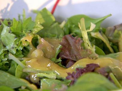 In a small bowl, whisk together the oil, vinegar, mustard, honey, salt, pepper and shallots until the vinaigrette is emulsified.