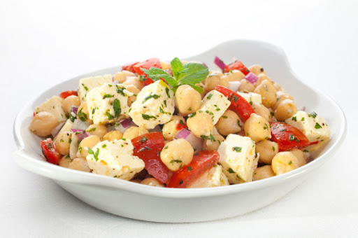 This chickpea salad is refreshing, healthy and zesty, and it only takes a few minutes to prepare. Beans are so frequently used as “back-ups” in a meal that we forget what great flavor they have on their own, or that they can even stand alone as a meal! This salad brings garbanzo beans to the foreground and you’ll find yourself not needing anything else to complete your lunch.