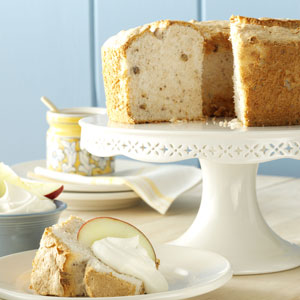Gently spoon into an ungreased 10-in. tube pan. Cut through batter with a knife to remove air pockets. Bake on the lowest oven rack at 350° for 35-45 minutes or until lightly browned and entire top appears dry. Immediately invert pan; cool completely, about 1 hour.