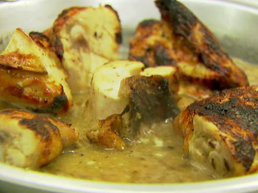 Remove chicken from broiler, leaving broiler on. Using a very sharp knife, cut each half into about 6 pieces (leg, thigh, wing, 3 small breast pieces).