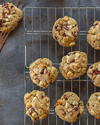WHITE CHOCOLATE CHIP MACADAMIA COOKIES WITH DRIED CHERRIES