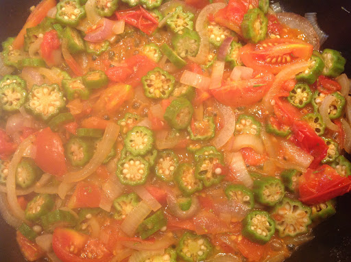 From Diane Rattray. Yummy! Made this with some okra I received in my weekly produce box and it tasted really good! Definitely make again the next time I get okra! Made this again in summer of 2016. Really good and easy. Alyssa even liked it! Used green onions this time. Also good.